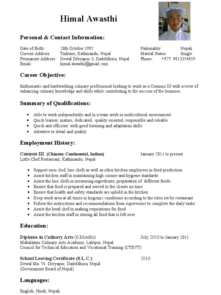 You have no idea how to write successful curriculum vitae, download curriculum vitae (cv) with basic sample/templates, we have pick up effective curriculum vitae (5 cv) just look, download and edit with your. Curriculum vitae nepali cv format. Use our foodservice cv examples to cook up the best job application—no matter if you're trying to get your first job in the industry, or are a seasoned pro. Curriculum vita fomat, curriculum vita model, curriculum vita model, example of a curriculum vitae created date: Write the organization name and address on the left side of the application and date on the right side of application.
